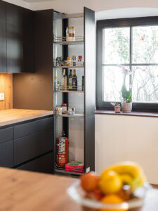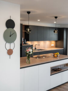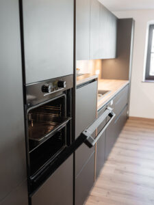 mit großer und gut ausgestatteter Küche